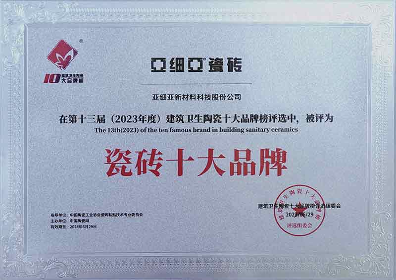 2023年中国建筑卫生陶瓷十大品牌榜“瓷砖十大品牌”
