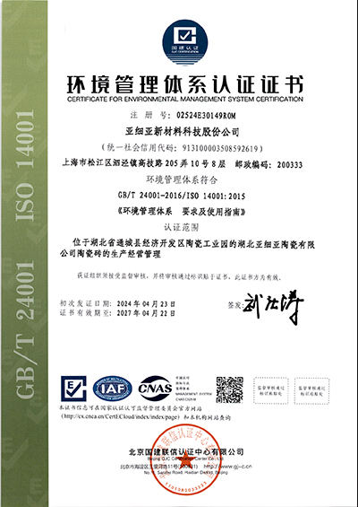 环境管理体系认证证书