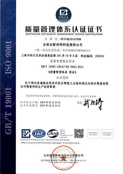 质量管理体系认证证书2024